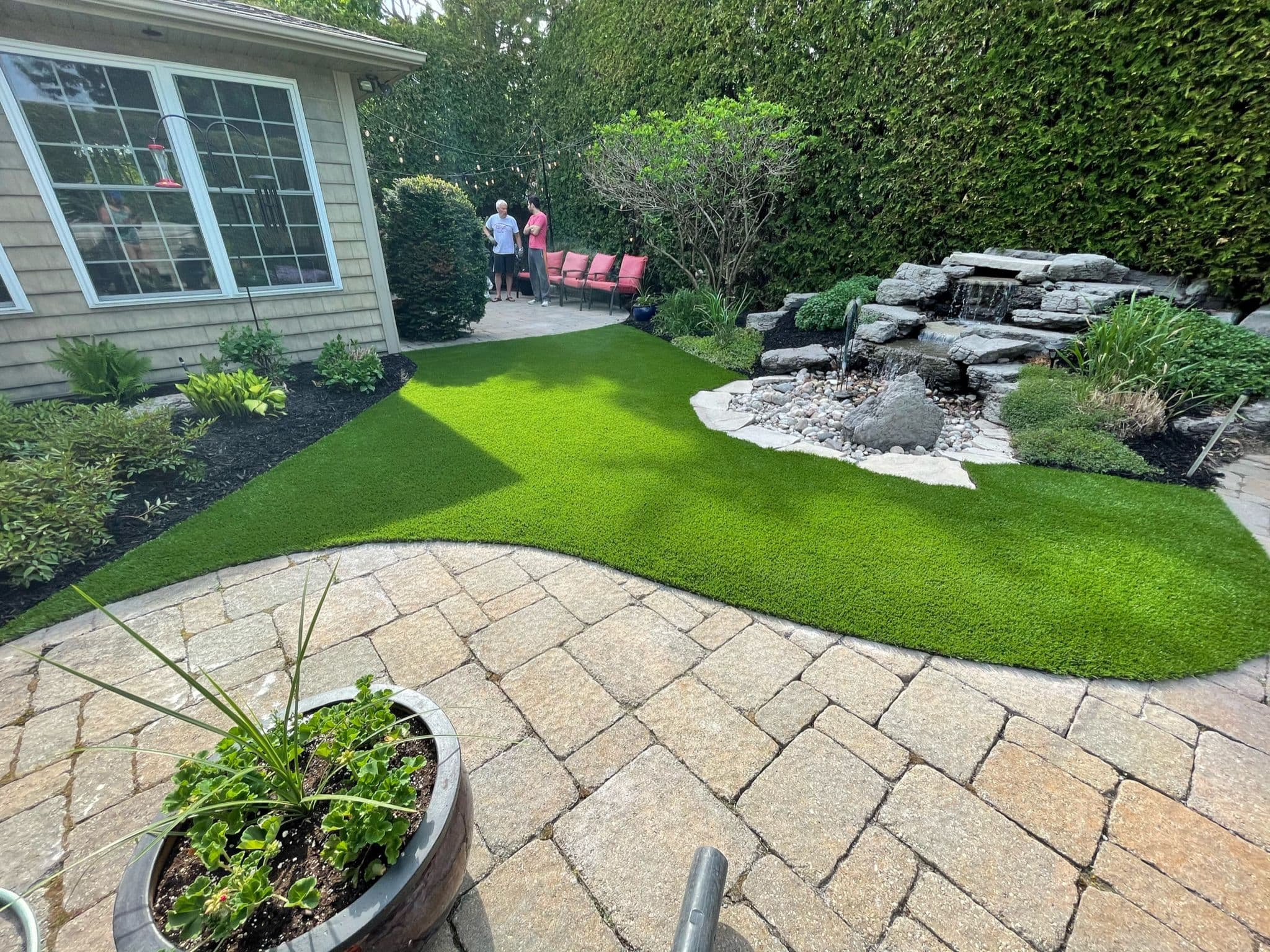 Sit back and relax in your perfect lawn haven with our maintenance-free artificial grass solution.
